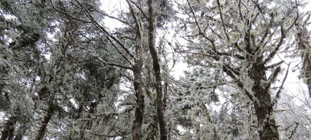 I added another layer, a warmer hat and gloves. The observation tower was covered in rime ice. I took off my pack and climbed the tower for some spectacular views. The icy climb added to the day's adventure. I stayed long enough to get some photos and got back down. My fingers felt frozen down to the bone.