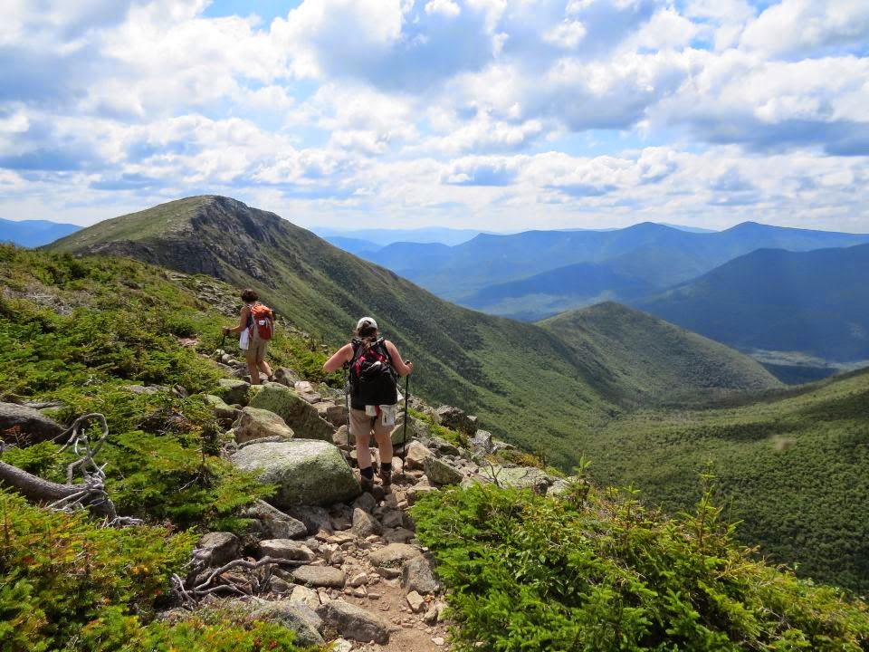 Approaching the top we could see those brave souls standing out on the precipice of Bondcliff to get their photo taken as somehow proof of conquering this summit. I wasted no time in dropping my pack and walking out onto this small piece of granite with LOTS of thin air on three sides and a very long way down to a rocky bottom. It was an unnerving feat to say the least but I did not hike all that way NOT to do it. Denise declined and there was no shame in not standing out there on the edge of certain death from one misstep. Jill on the other hand charged out there and was enjoying all that thin air below.