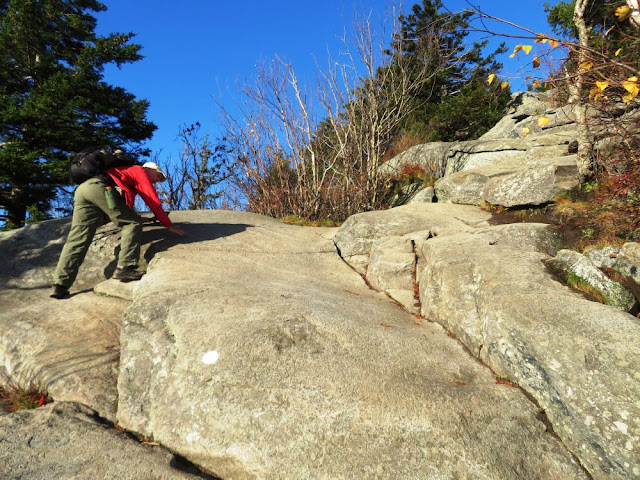 It was a good hike up the White Dot Trail with a lot of fun ledge scrambling. There was a small group of hikers on the summit that had come up another trail. They left and we had the summit to ourselves for a few minutes, a lone hiker arrived shortly after the group had departed. It was very windy and quite cold but we managed to find a spot out of the wind. The views were spectacular from the top of this peak. With a cold wind blowing this was not a morning for lingering and basking so we were soon heading down.