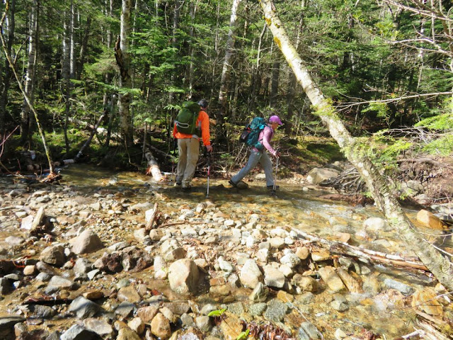 We met at Gale River trailhead parking lot and spotted a vehicle then drove over to North Twin trailhead parking lot. We started up the trail at 7:30 AM. The trail was quite wet and the Little River was slightly high and flowing fast. We used two large trees to cross over the river and kept our feet dry.